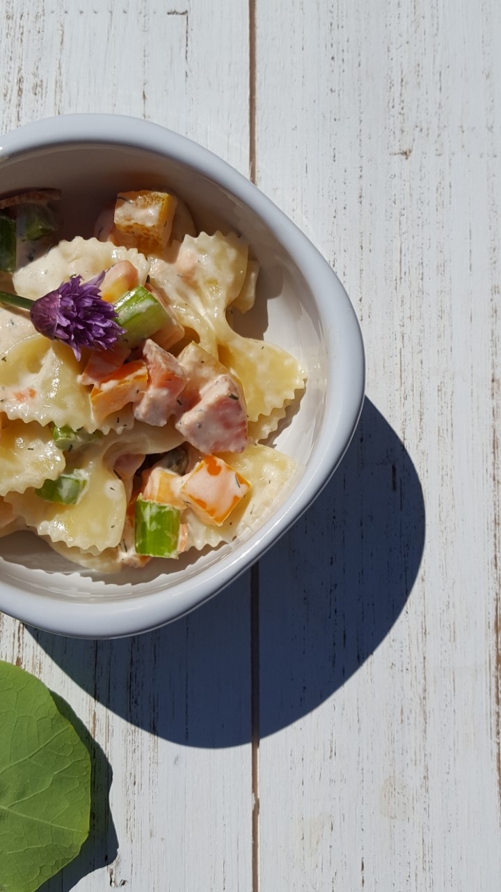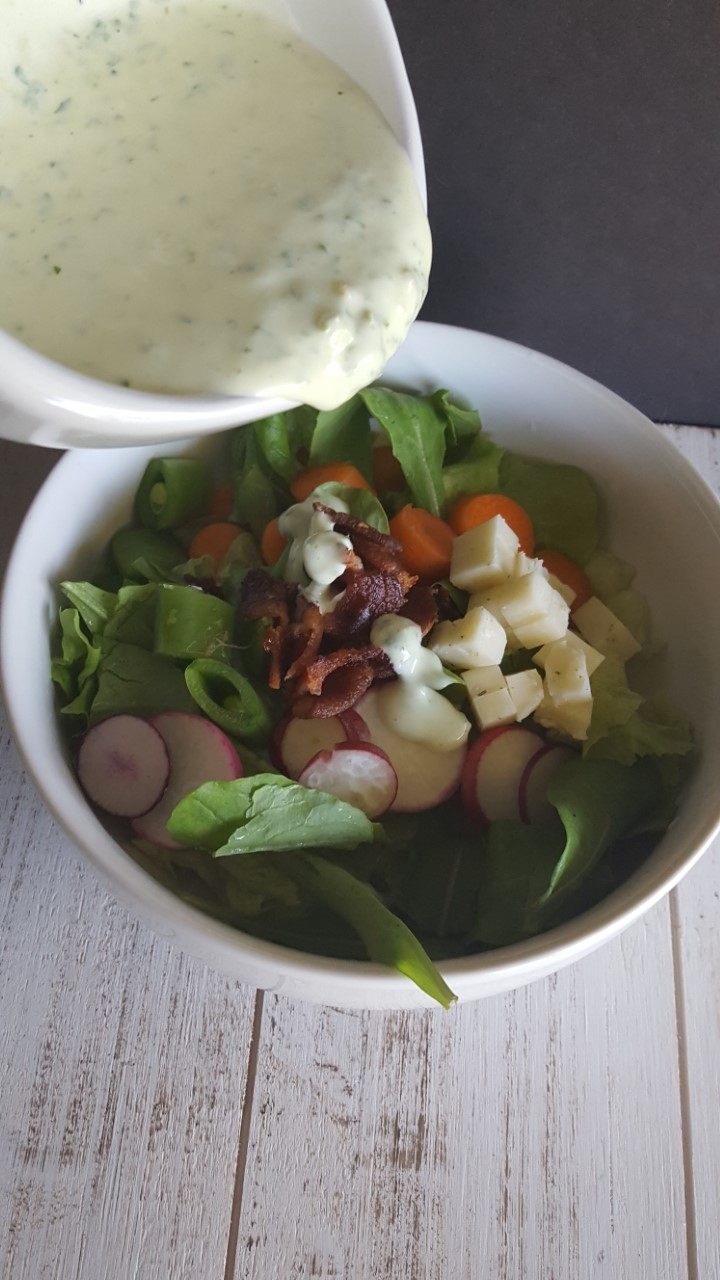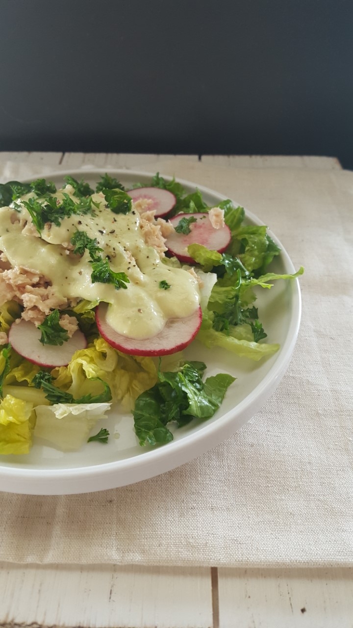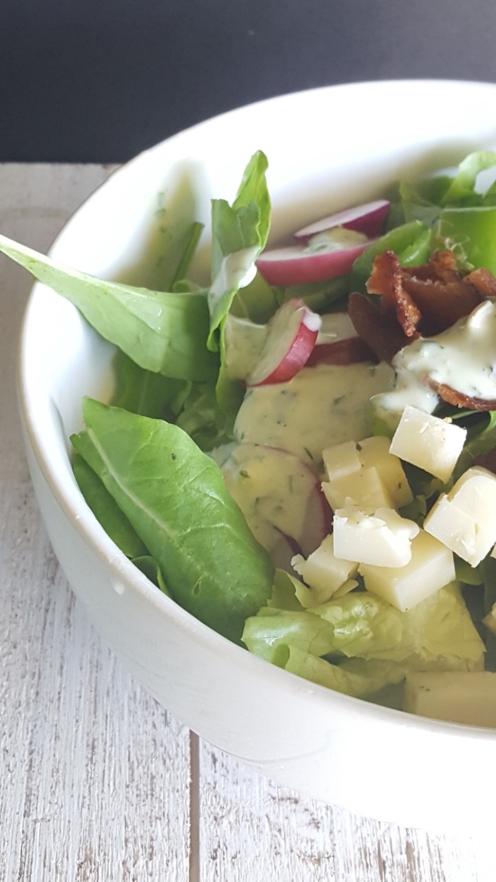 But back to the point: cocoa coffee rubbed salmon is positively amazing! It is the best blend for blackened salmon. I baked it in a cast iron skillet until it was just opaque and easily flaked with a fork. I did not add anything to it but the rub. One pound of salmon lasted me for lunch for two days. I’m a big fan of salmon salad, so served it with local farm greens and late season radishes and a dash of ranch dressing.