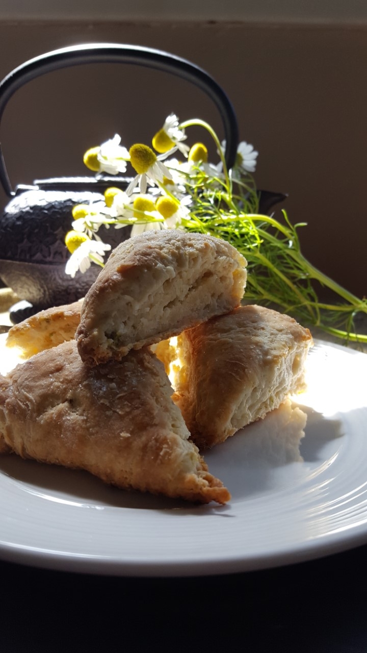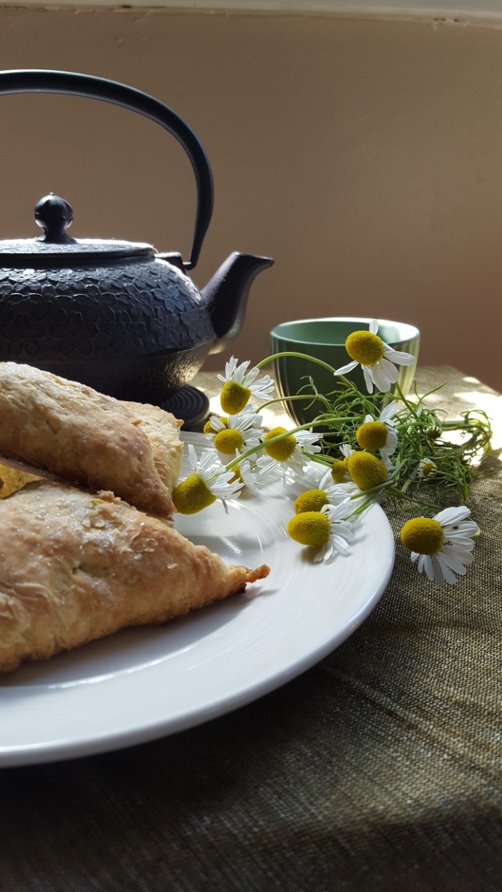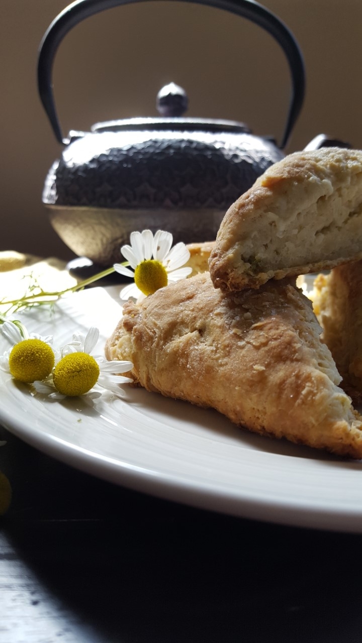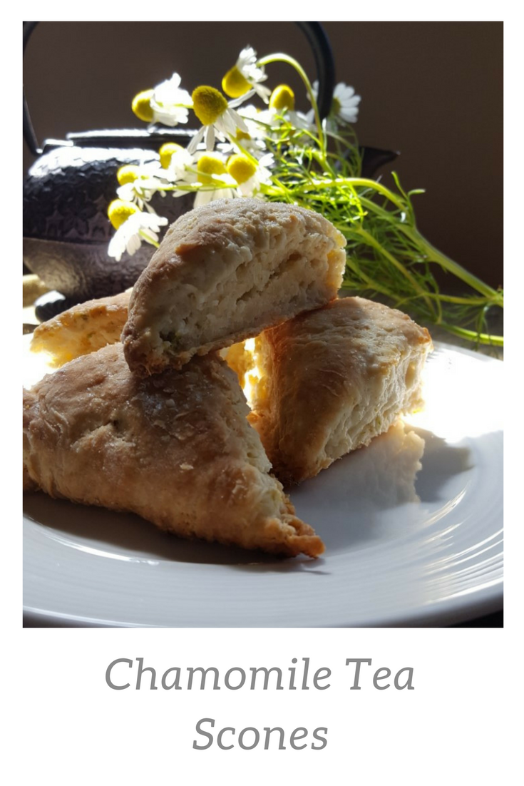 These chamomile tea scones are light and fruity. They make use of the whole chamomile flower, and if you are like me, and a bit too lazy to dry them for tea, make great use of an edible flower. Plus, they would be great being served aside a cup of tea - chamomile or other.