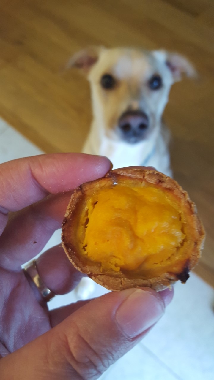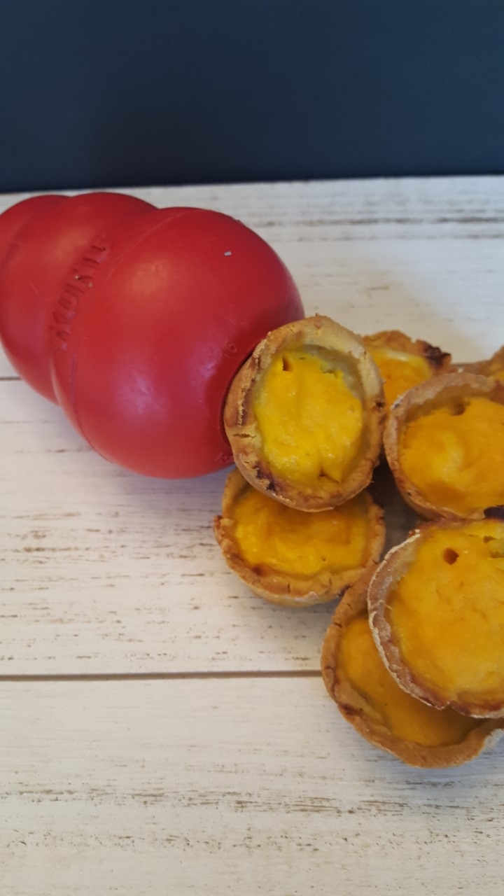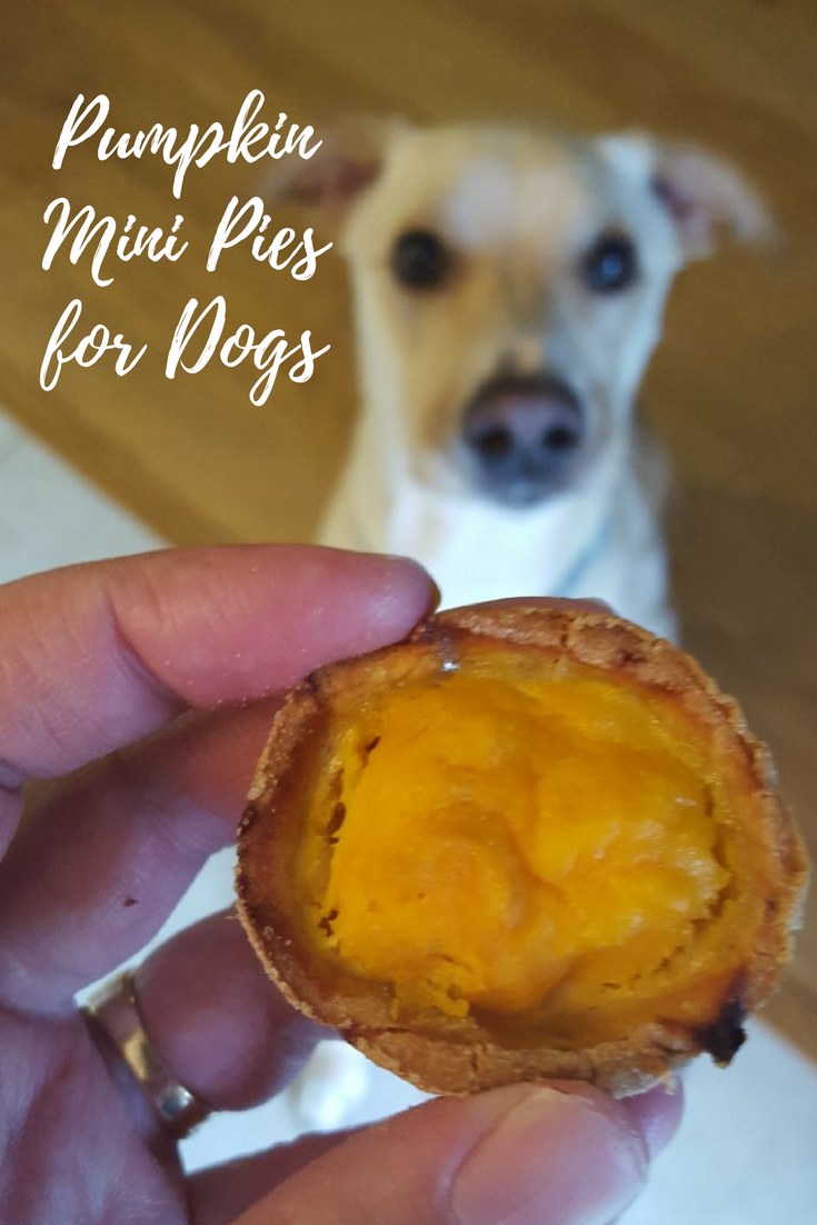 Pumpkin mini pies for dogs are a healthy treat for your four legged best friend. As I was roasting kuri squash this weekend, it occurred to me that I could make a variation of my mini pumpkin pies for Daisy, our dog. While Daisy always gets a bit of turkey in her Kong toy at Thanksgiving, we avoid giving her any processed foods, like pumpkin pie. However, she absolutely loves pumpkin puree and it’s a key ingredient in the homemade dog biscuits I make her. It occurred to me that I could use the dog biscuit dough that I usually make with a modified pumpkin custard and make pumpkin mini pies for dogs.