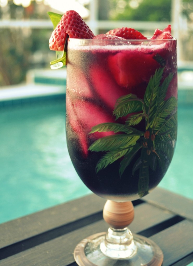 Next is a non-alcoholic sangria from Watch What U Eat that blends pineapple, strawberries, and sparkling water for a refreshing afternoon drink.