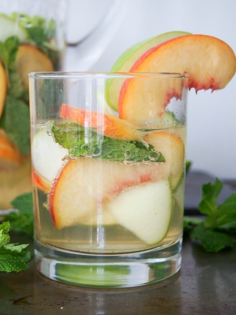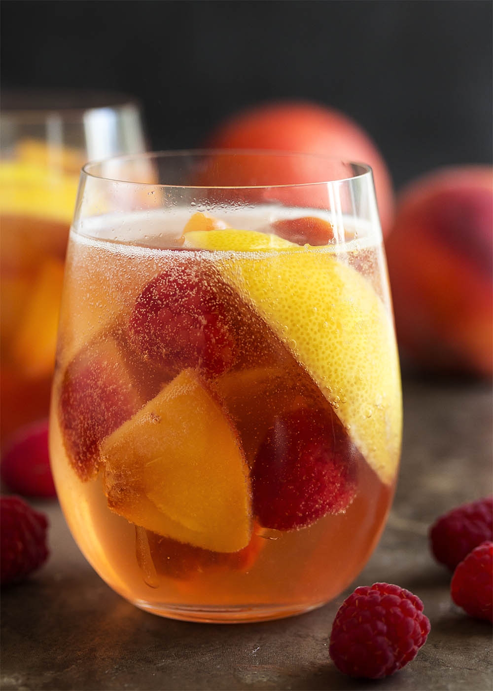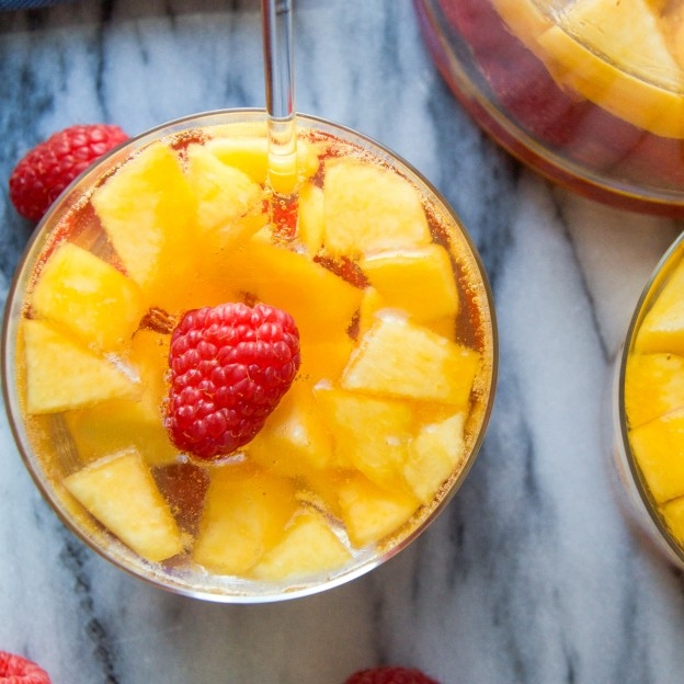 One of the great things about sangria is that it’s so easy to make use of the best fruits of the season, like this peach melba sangria from Garlic and Zest.
