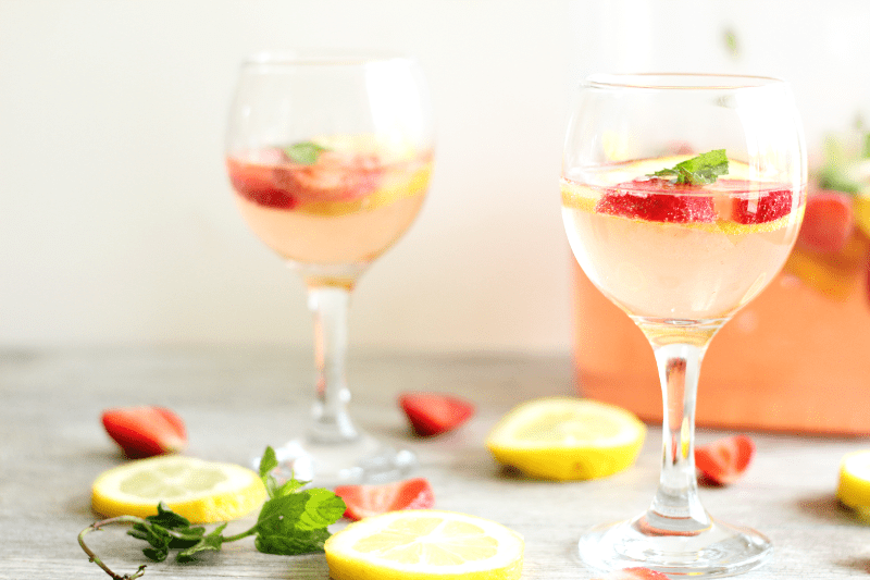 You can’t ever have enough recipes for sangria with rose wine. This sangria from Lean, Clean and Brie is a luscious mix of strawberries, lemons, and rose.